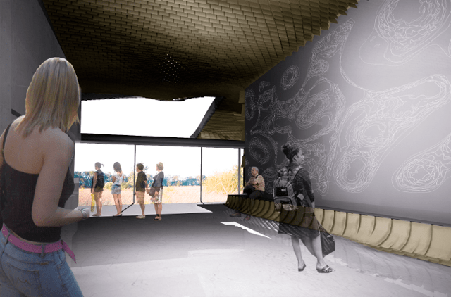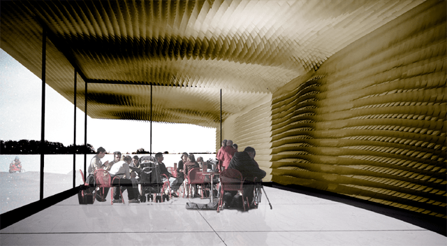 Project was developed as a competition proposal for a park pavilion in Edmonton. The pavilion provides a backdrop for numerous seasonal activities in the park. Weather patterns and weathering are explored in a series of material distributions inside of the pavilion and on the site itself. Precedents in the weathering effects on wood and shingles in particular are further developed to engage specific performance criteria for the project.