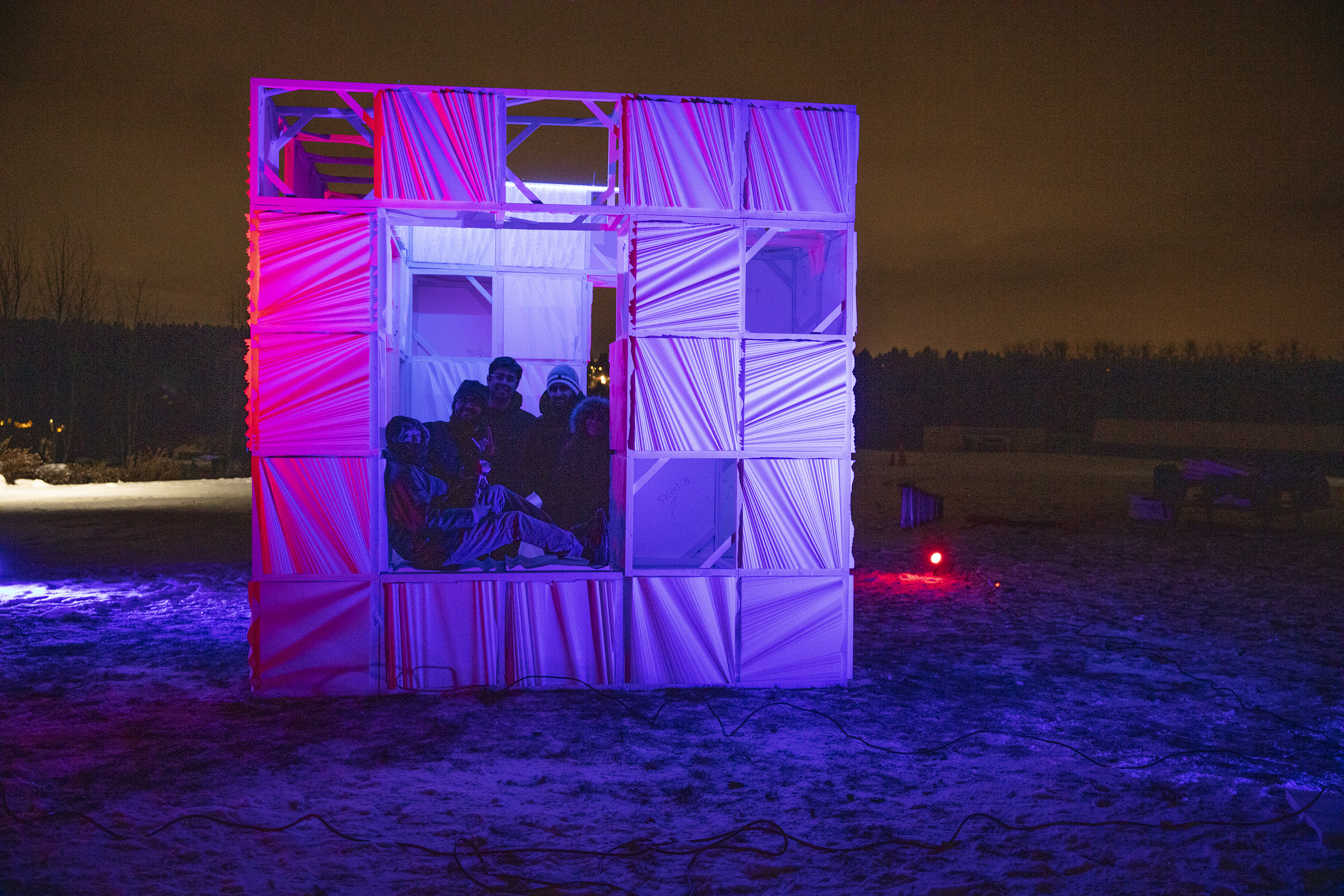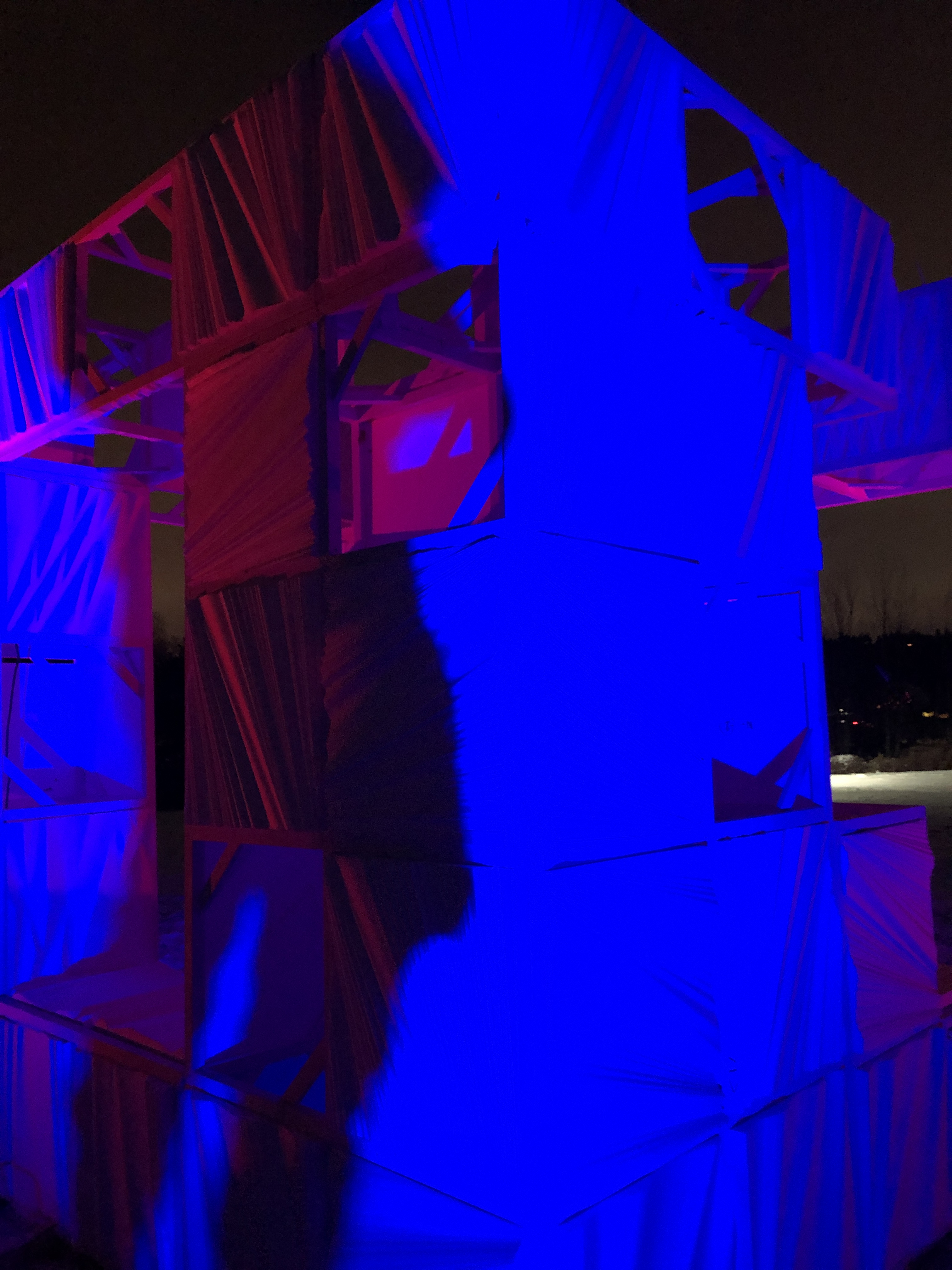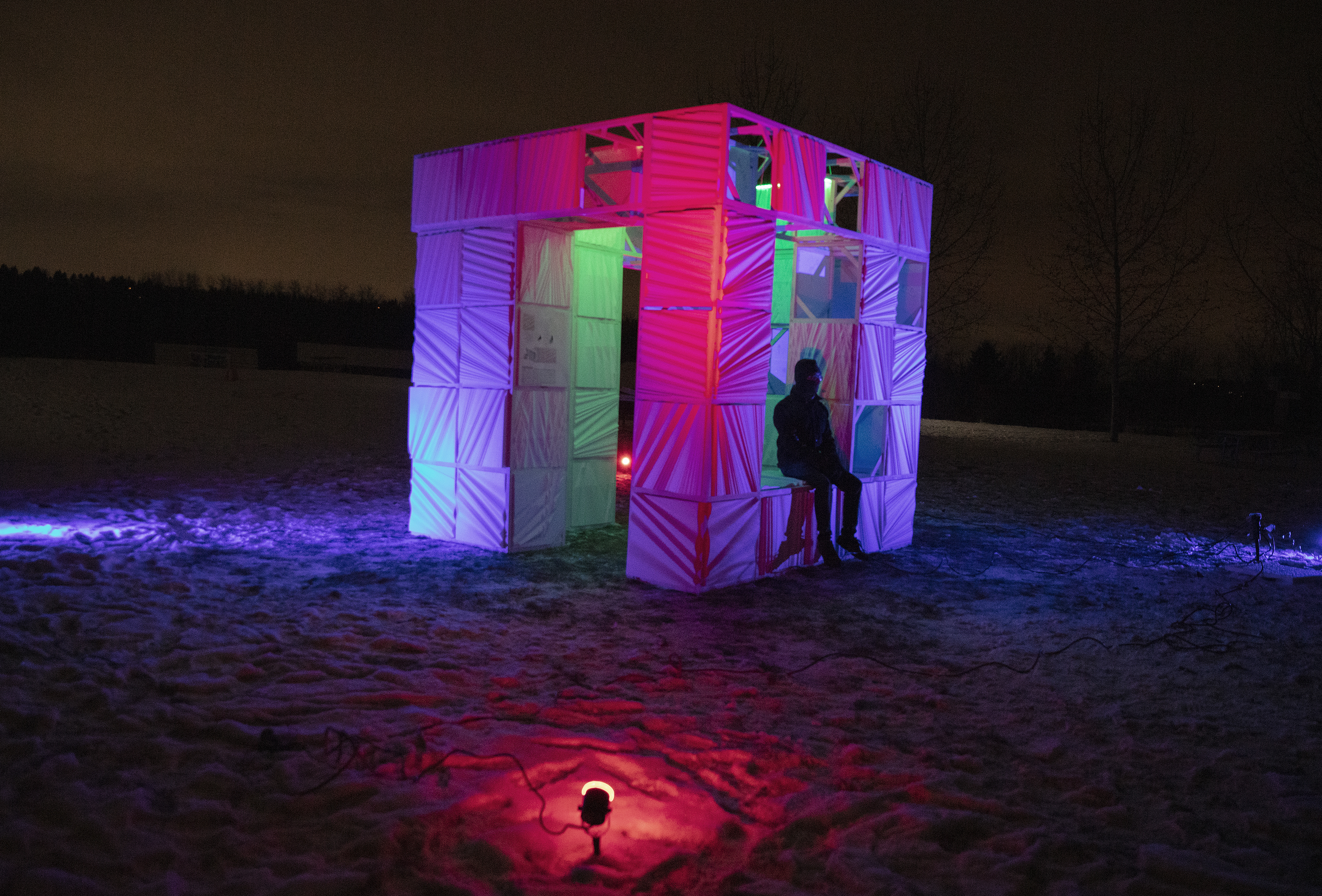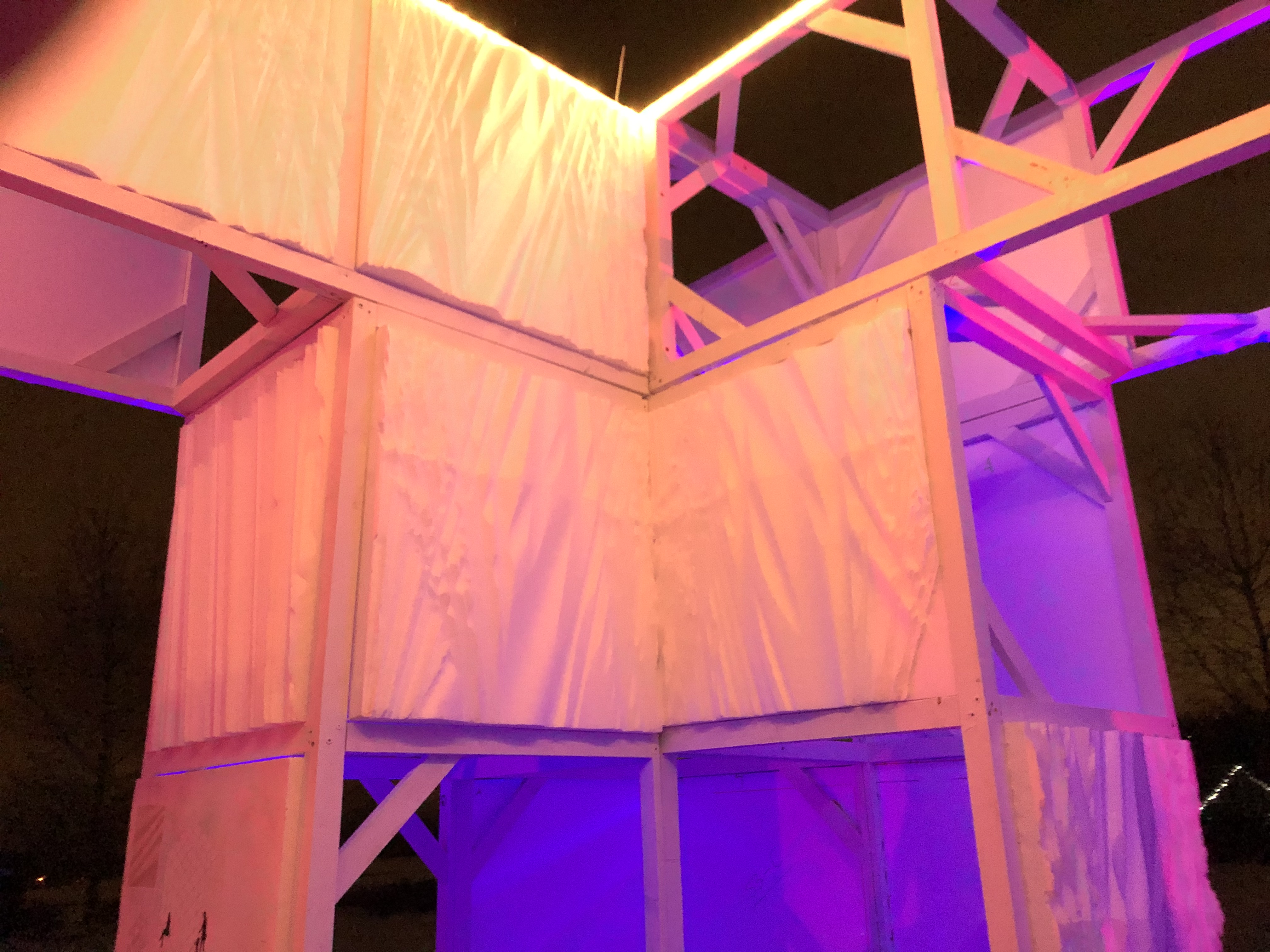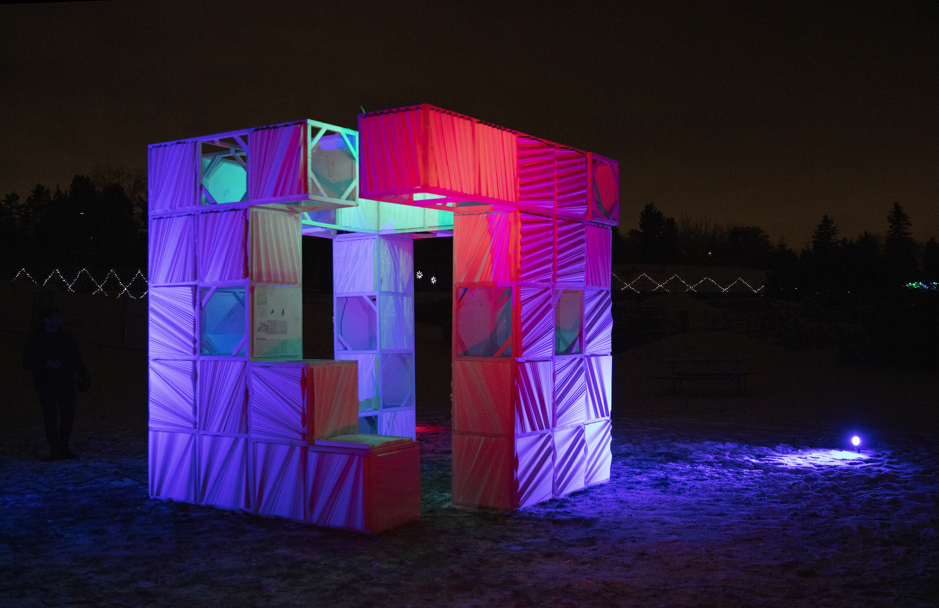 TEXTURA, focuses on bridging the natural phenomena of light and texture through a playful structure that invites all ages to wander through. Edmonton, being the northernmost city in North America with a population over a million, has the opportunity to witness the northern lights at select times. Therefore, the light component of the installation emulates the mesmerizing washes of colour that occur in the sky by using LED Lighting. The second component abstracts the many textures that occur in nature as a way of engaging different sensory experiences such as touch and sight.